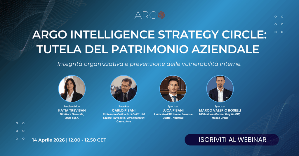 La tutela del patrimonio aziendale è imprescindibile per ogni organizzazione, ma proteggere l’azienda significa anche saper gestire ciò che accade al suo interno. Affronteremo il tema il 14 aprile durante il webinar gratuito “Argo Intelligence Strategy Circle: tutela del patrimonio aziendale”.